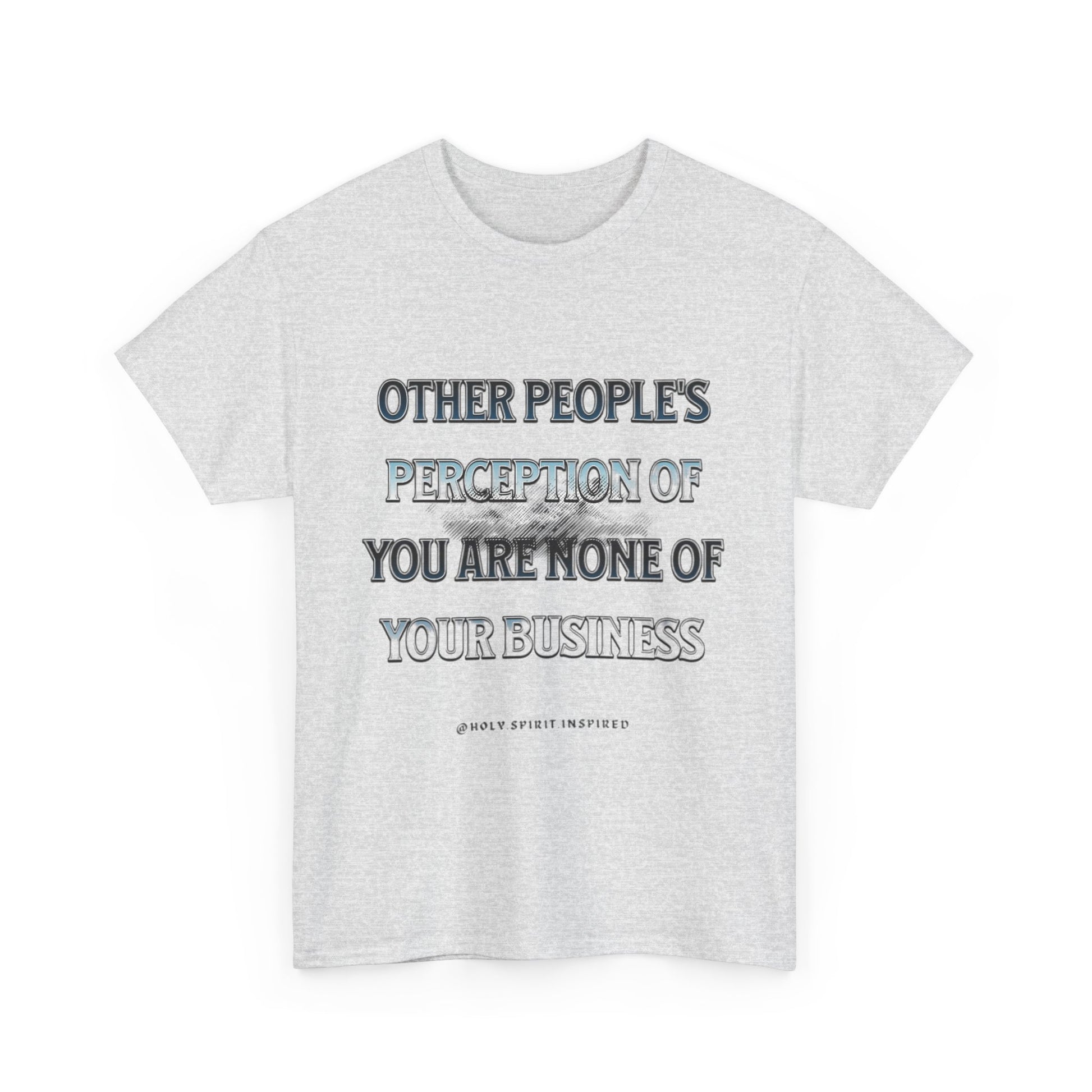 "Other People's Perception Of You Are None Of Your Business" was inspired by a Just Different Podcast episode. This stood out to me because I struggle with how others perceive me and it helps with knowing that I shouldn't be concerned about what others think of me. So with this Tee you will not just remind yourself that other people's perception of you are none of your business but you'll remind others too.