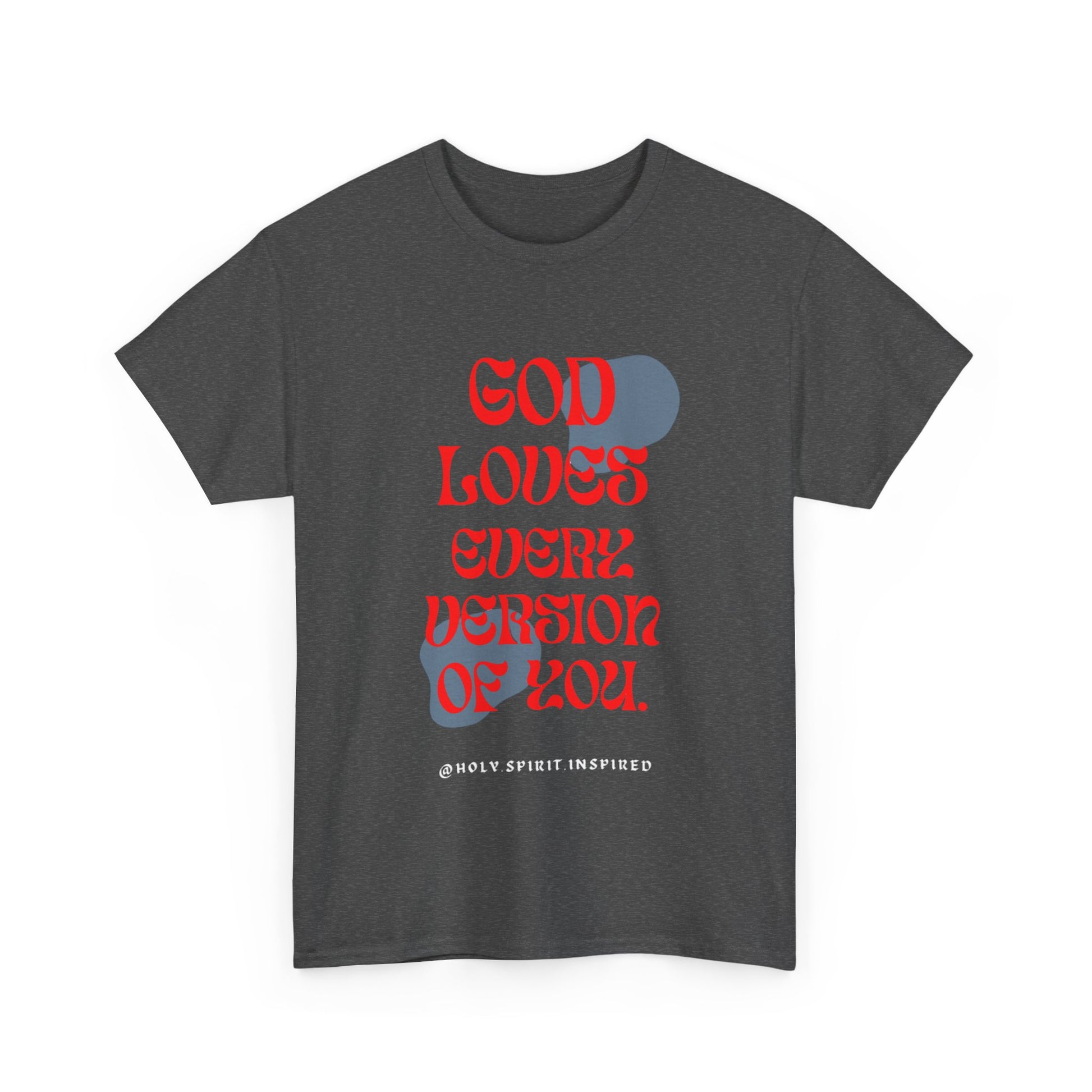 "God loves Every Version Of You" is a Tee inspired by @worldwidespeaks. This message stuck out to me through a reel I was watching on Instagram, the speaker was saying that God loves every version of you. He loves the version you don't like, the version you try to hide, and the version you think people hate.
